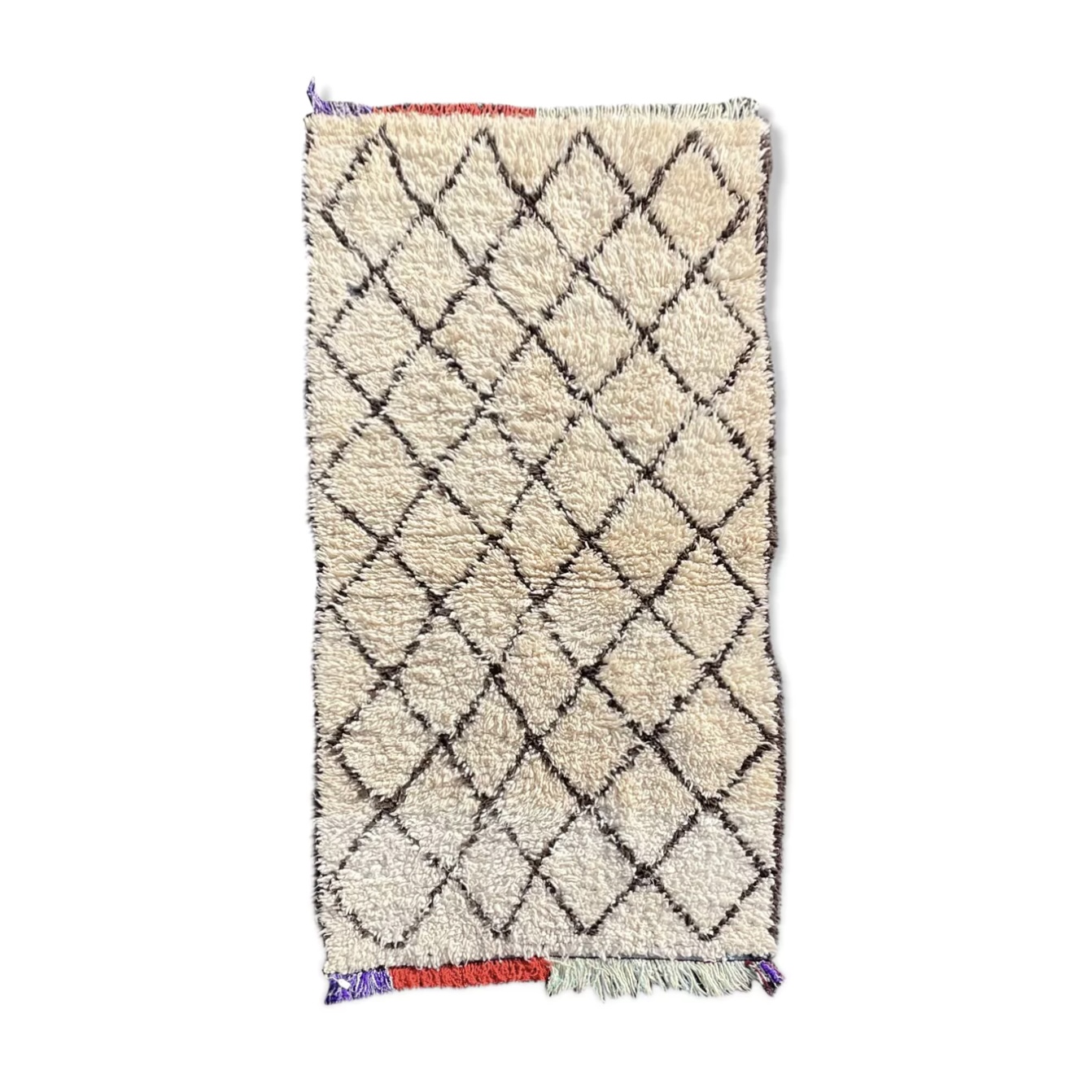 The Beni Ouarain carpet is characterized by its ivory color (or white / beige), which comes from the Marmoucha sheep, and its geometrical black (or brown) drawings, the color coming this time from the sheep’s head. There are therefore 2 main colors for our Beni Ouarain carpet : white and black / brown.