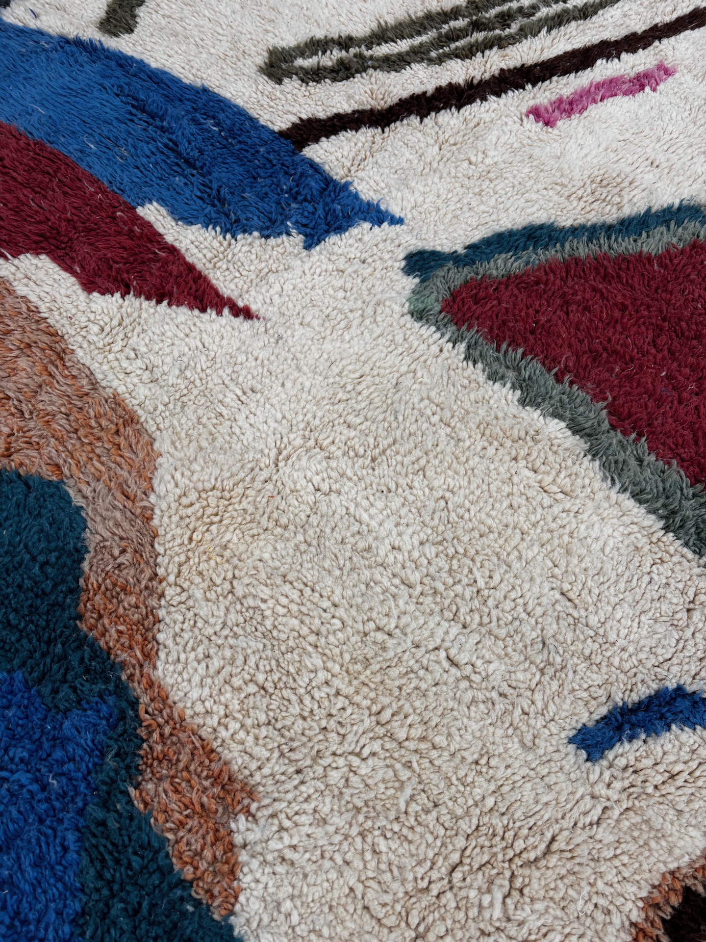 Ce tapis marocain en laine sur mesure se distingue par son design abstrait et artistique, inspiré des compositions modernes tout en respectant l’âme du savoir-faire berbère traditionnel. Chaque forme, chaque couleur est pensée pour créer un tapis graphique, expressif et intemporel, capable de structurer un intérieur contemporain comme un espace plus bohème.
